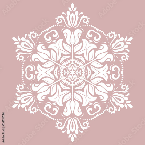 Oriental vector pattern with arabesques and floral elements. Traditional classic round white ornament. Vintage pattern with arabesques