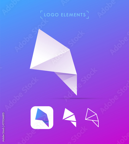 Origami paper abstract wing logo template. Vector material design, flat, line-art styles. Application icon