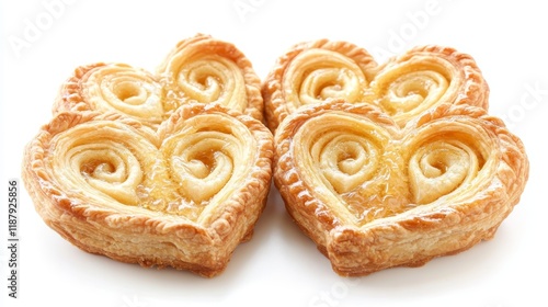 Original pie biscuits or palmier biscuit french cookies made from puff pastry or elephant ear or french hearts cookie or puff pastry and honey double whirl or butterfly cookies Isolated on white