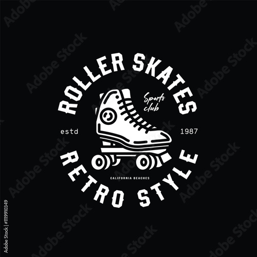 Original vector emblem.. Vintage roller skates. T-shirt design.