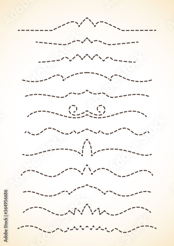 Ornamental calligraphic dash lines dividers page decoration Vector delicate minimalistic design element set