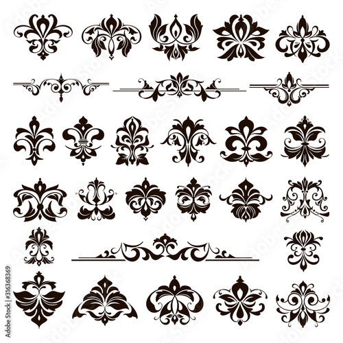 Ornamental design lace borders and corners Vector set art deco floral ornaments elements