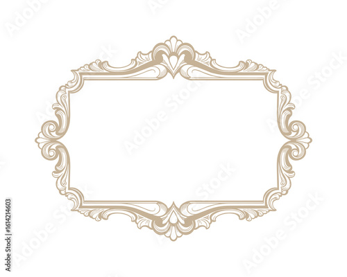 Ornamental Frame, Elegant Rectangle Shape with Decorative Floral Scrollwork in Beige Color Vector Illustration