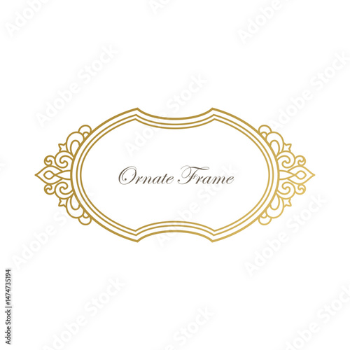Ornamental frame in Victorian style. This ornate gold frame is perfect for use in wedding stationery designs, personal branding, greeting card, packaging and more.