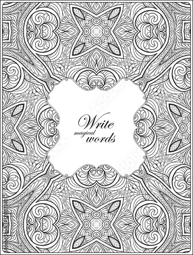 Ornamental pattern with decorative frame for text. Anti stress coloring book for adult. Outline drawing coloring page.