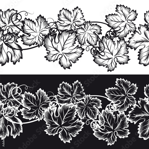 Ornamental seamless borders with grape leaves. Natural ornament set vector