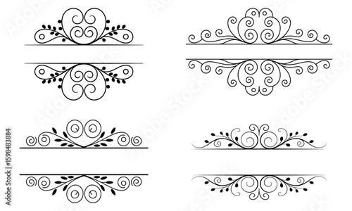 Ornamental swirl divider elements set with vintage decorative border for invitation and retro design