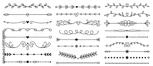 Ornamental Text Divider Set - Elegant Vintage Borders with Intricate Swirls - Monochromatic Vector for Invitations & Web