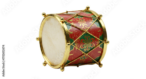 Ornate Christmas Drum with Red Green and Gold Pattern, Festive Holiday Decoration on Transparent Background