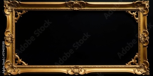 Ornate gold baroque frame, square, black backdrop, antique, rich, shadow