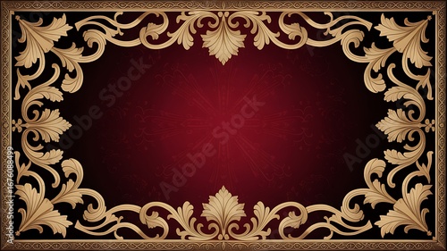 Ornate gold border on rich burgundy background