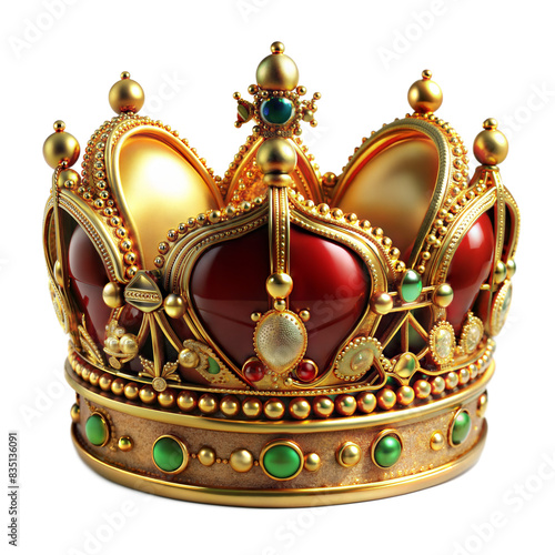 Ornate gold crown adorned with colorful jewels, set on a clear background, exuding regality