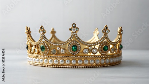 Ornate Gold Crown Adorned with Emeralds and Pearls