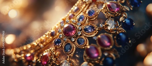 Ornate gold jewelry with colorful gemstones