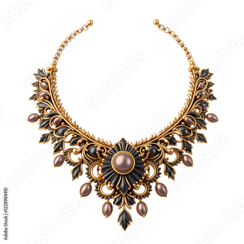 Ornate Gold Necklace Featuring Mauve Gemstones and Filigree Details