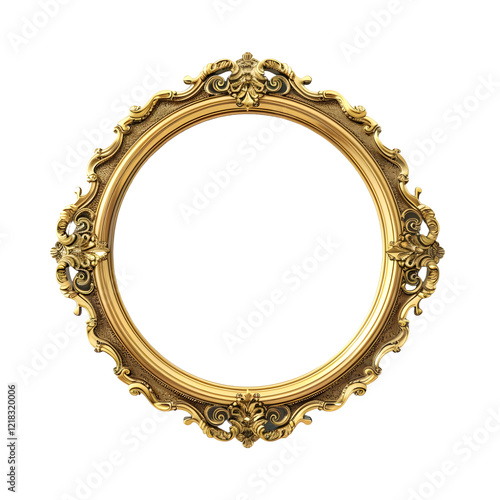 Ornate gold oval frame isolated on transparent background
