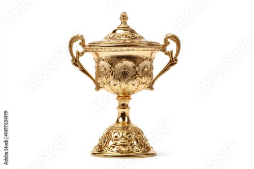 Ornate gold trophy with intricate details. A symbol of victory and achievement.