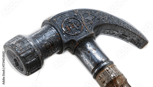Ornate hammer with intricate engravings evoking power and craftsmanship, a tool as art, perfect for themes of strength, construction, and historical impact