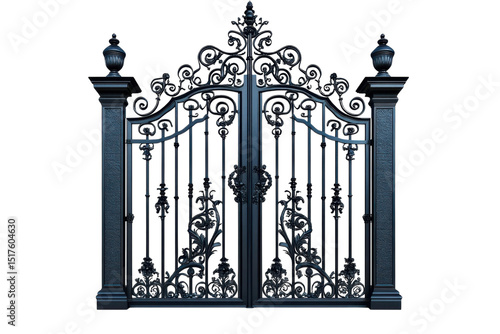 Ornate Iron Gate Design Black Metal Architecture Fortress Security on transparent background