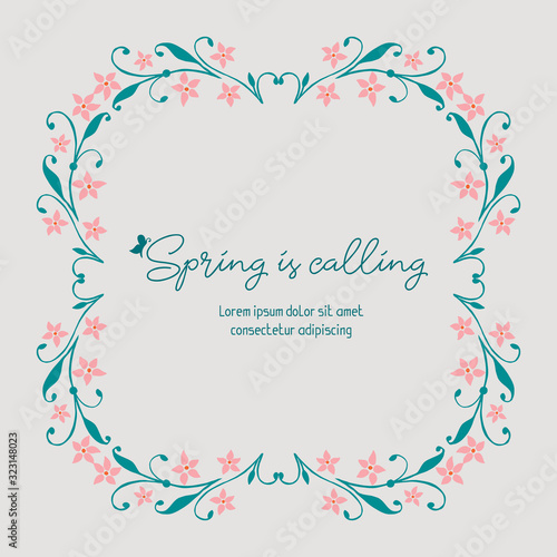 Ornate leaf and floral frame, for spring calling greeting card template design. Vector