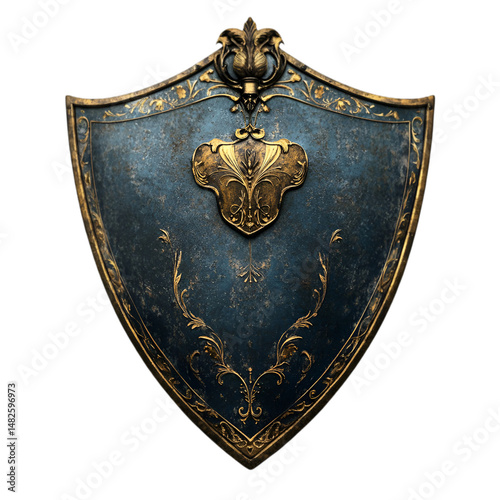 Ornate Medieval Shield Dark Blue Gold Detailing