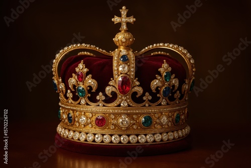 Ornate royal crown with precious gemstones and luxurious jewelry craftsmanship showcasing regal elegance and nobility