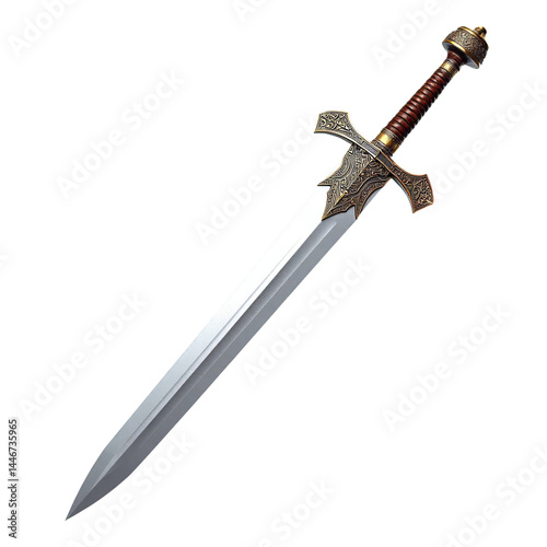 Ornate Silver Sword. Fantasy Weapon. transparent background.