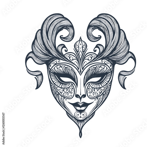 Ornate Venetian Mask with Intricate Swirls and Elegant Artistic Design