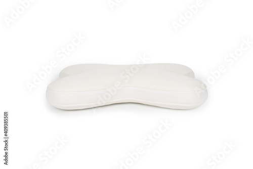 Orthopedic Pillow with a Memory Effect. Medical treatment pillow for sleep. Comfort Memory Pillow under the head with a recess under the shoulder isolated on white background. Sleeping Support Pillow