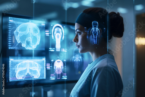 Orthopedic surgeon doctor examining patient joint x-ray bone scan in radiology orthopedic hospital Generative Ai