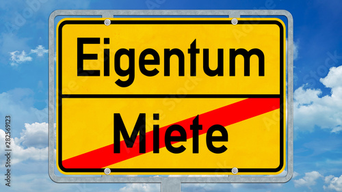 osg60 OrtsSchildGrafik osg - Ortsschild mit der Aufschrift: Eigentum versus Miete - 16zu9 g8328