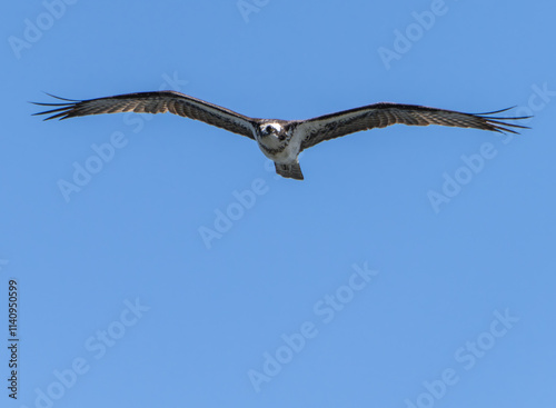 Osprey (Pandion Haliaetus) Circling the sky over the ocean in search of fish. Lost Colony of Roanoke, North Carolina. Summer.