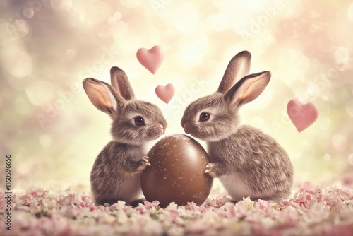 Osterhasenpaar mit dekoriertem Schokoladenei