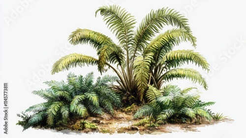 Ostrich fern lush green colony in temperate regions showcasing its unique crown forming growth pattern and vibrant foliage.