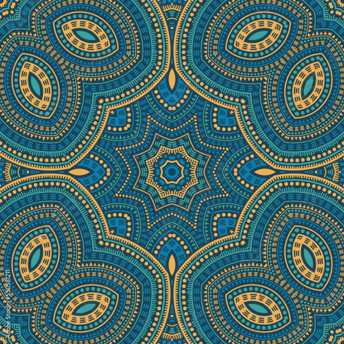 Ottoman ethnic geometric vector seamless ornament. Wallpaper print design. Modern boho pattern. Ceramic decor design. Star symmetry elements texture.