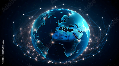 Our interconnected world, a vibrant blue globe pulsating with digital energy, glowing with connections in a dark, starry expanse.