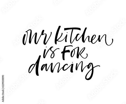 Our kitchen is for dancing card. Hand drawn brush style modern calligraphy. Vector illustration of handwritten lettering.