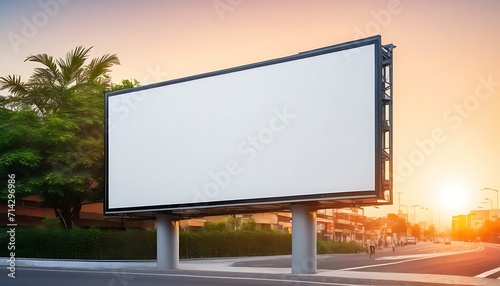 Outdoor advertising billboard for urban streets white and blank at sunset Copy space image Place for adding text or design
