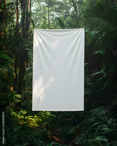 Outdoor image of blank billboard standing, having many evergreen trees around, sides of green divided , amazing landscape. Copyspace for advertisement.