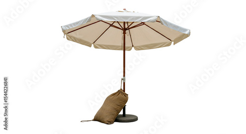Outdoor patio umbrella for sun protection and shade with sandbag for stability and wind resistance on transparent background