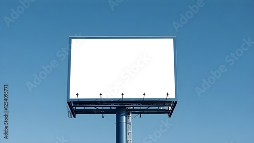 Outdoor pole billboard on blue sky background with mock up white screen and clipping path,blue,marketing,banner