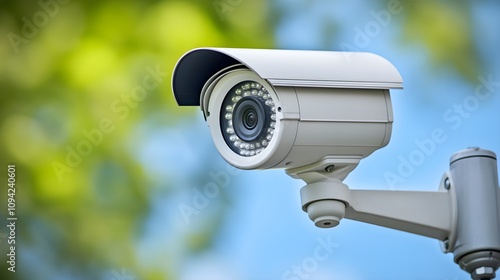 Outdoor Security Camera on Blue Sky Background