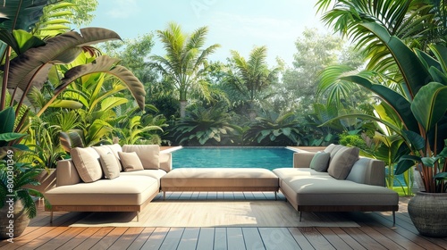 Outdoor Sofa Resort Relaxation: An illustration of an outdoor sofa at a resort