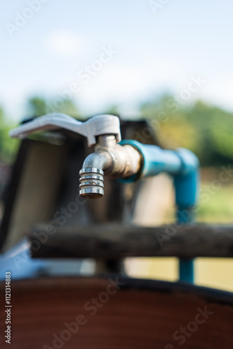 Outdoor water tap faucet close up