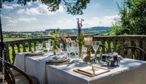 Outdoor Wedding Table with Pink Flowers and Fairy Lights