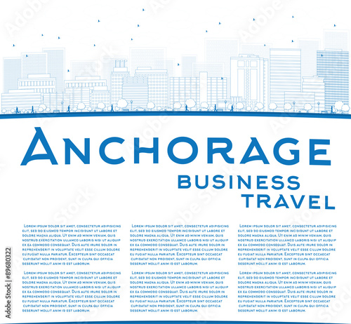 Outline Anchorage (Alaska) Skyline with Blue Buildings and copy