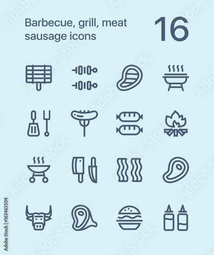 Outline Barbecue, grill, meat, sausage icons for web and mobile design pack 1