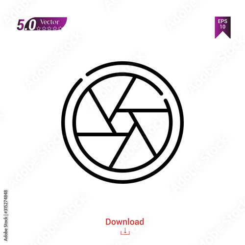 Outline camera-shutter icon vector isolated on white background. Graphic design, material-design icons, mobile application, logo, user interface. UI / UX design, EPS 10 format vector