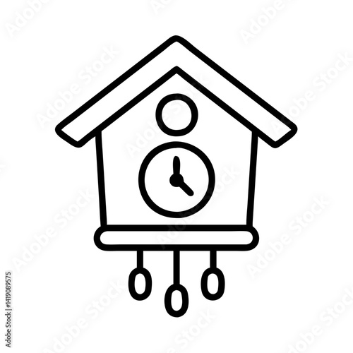 Outline cuckoo clock vector illustration, traditional wood clock, wall decor, time piece, home decor
