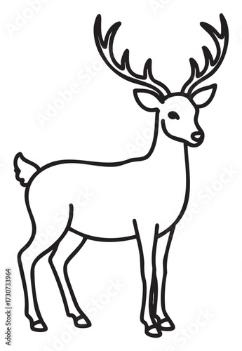 Outline drawing of a deer with antlers standing gracefully - stock vector